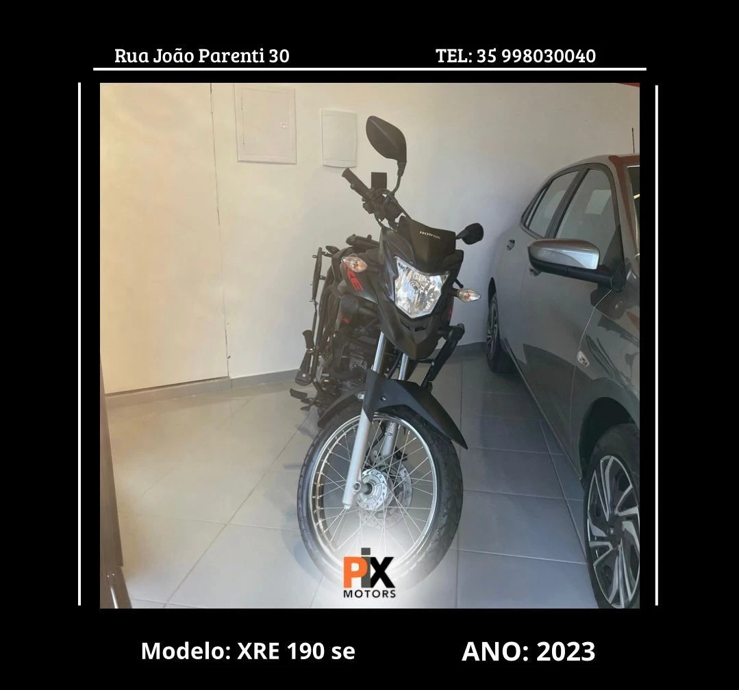 XRE 190 SE 2023 – Estilo, versatilidade e economia em duas rodas! Quer uma moto moderna, confortável e pronta pra encarar cidade e estrada de terra? A XRE 190 SE 2023 é a companheira ideal pra quem busca versatilidade, economia e aquele visual aventureiro! • Ano: 2023 – moto nova, atual e cheia de presença • Motor 190cc Flex – desempenho ágil e econômico • Versão SE (Special Edition) – design exclusivo e grafismos diferenciados • Suspensão elevada e posição de pilotagem confortável – ideal pra qualquer terreno • Muito bem cuidada e revisada – pronta pra rodar Valor Total: R$ 23.500,00 Entrada facilitada a partir de 20% Financiamento em até 12x, 24x ou 36x (sujeito à análise de crédito) Negociação rápida e segura – saia hoje mesmo com a sua XRE! Pix Motors – Pouso Alegre Rua João Parenti, 30 – Centro – Pouso Alegre/MG Chama no direct e garanta já essa aventureira! #xre190 #hondaxre #motoaventureira #hondabrasil #pixmotors #pousoalegre #motoeconomica #estradaeterra